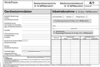Das Medizinproduktebuch erfüllt die inhaltlichen und formalen Anforderungen nach 12 der Medizinprodukte-Betreiberverordnung. Blatt A ist gleichzeitig als Erfassungsbogen für das Bestandsverzeichnis nach 13 geeignet. Es kann auch genutzt werden für solche Geräte, für die kein Medizinproduktebuch... weiter lesen