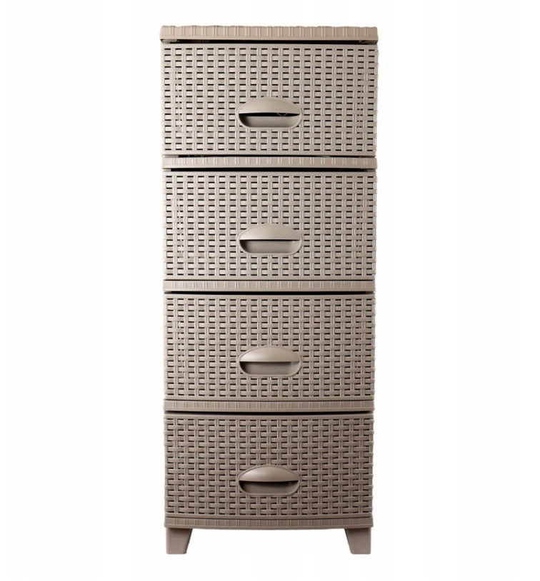 4 patrová komoda vyrobená z plastové elegantní imitace ratanu. Vhodná do koupelny, dětského pokoje. ložnice, garáže, dílny, skladu apod. kamkoli, kde je klíčový pořádek a styl! Zesílená konstrukce – zvýšená stabilita, trvanlivost a odolnost. Pevný materiál – odolný vůči vlhkosti, bez zápachu a...