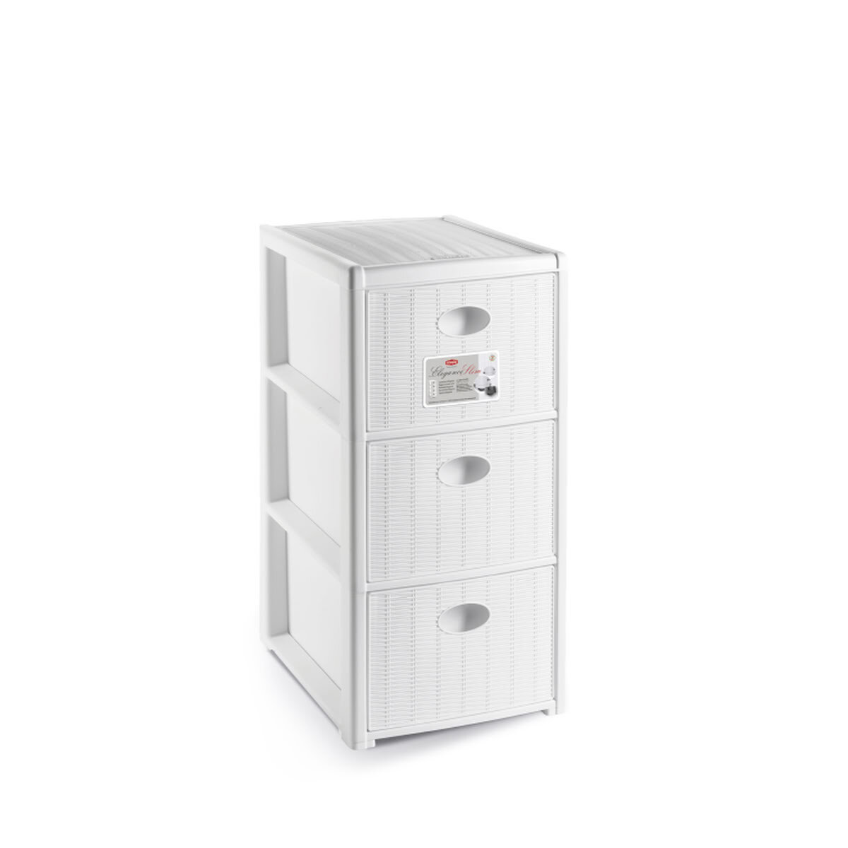 Úložný plastový regál Elegance Slim, 3 zásuvky, bílý