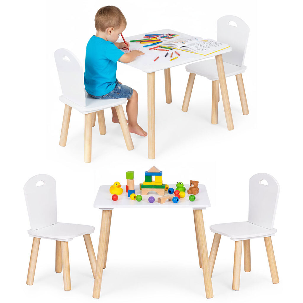Sada dětského nábytku: stoleček + 2 židličky, bílá; bílá, přírodní; dřevo