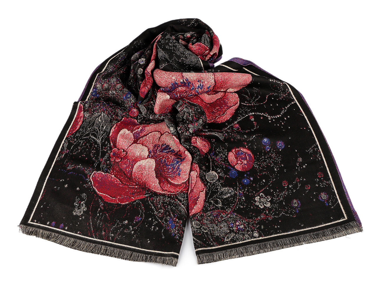 Šátek / šála / pléd typu kašmír 70x185 cm - 1 ks - 8 černá červená