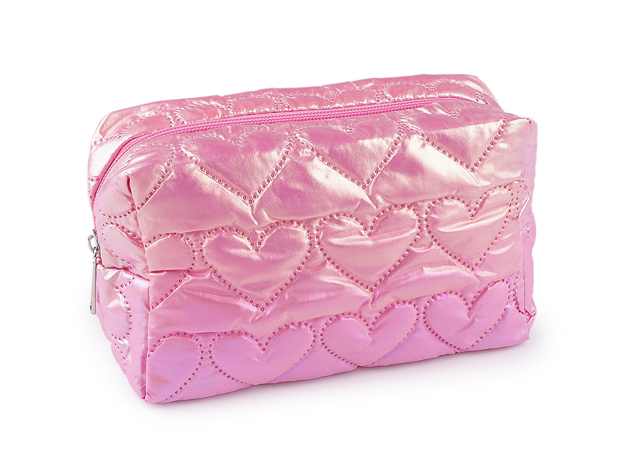 Kosmetická taška / pouzdro prošívané, srdce 18x11 cm holografické - 1 ks - 3 růžová