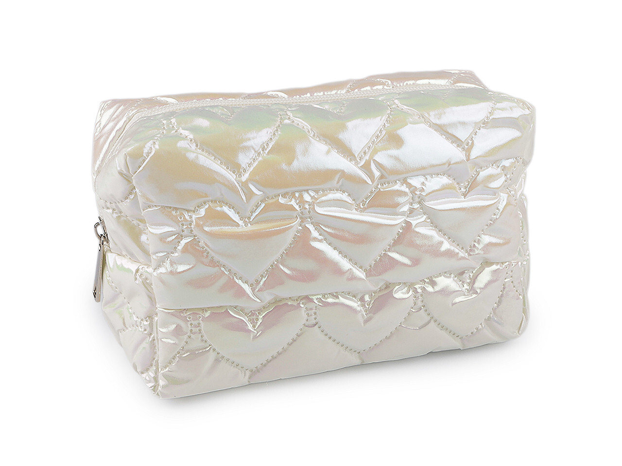Kosmetická taška / pouzdro prošívané, srdce 18x11 cm holografické - 1 ks - 1 krémová nejsvět.
