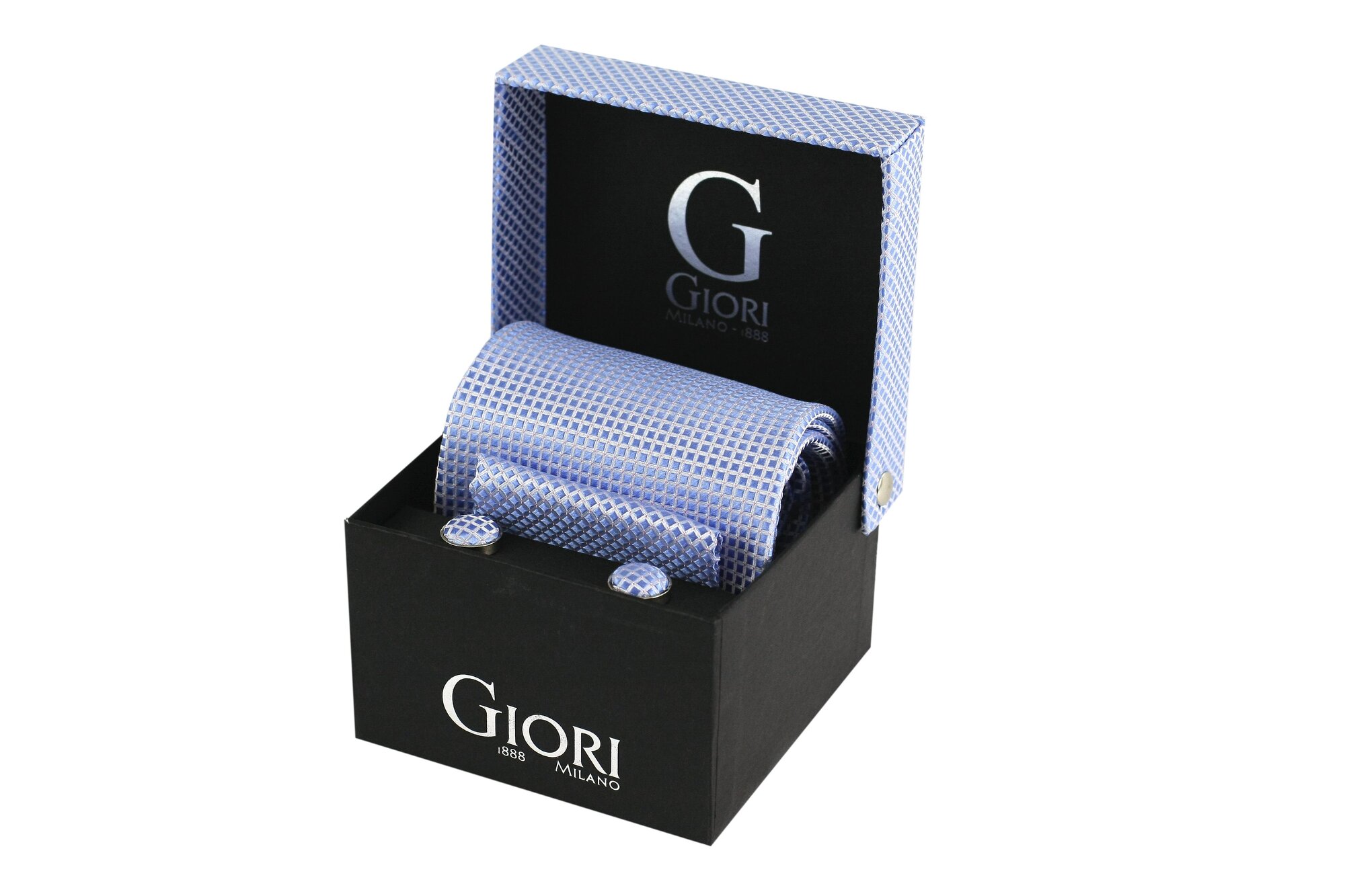 Hedvábná kravata a manžetové knoflíčky Giori Milano RS0803, modré