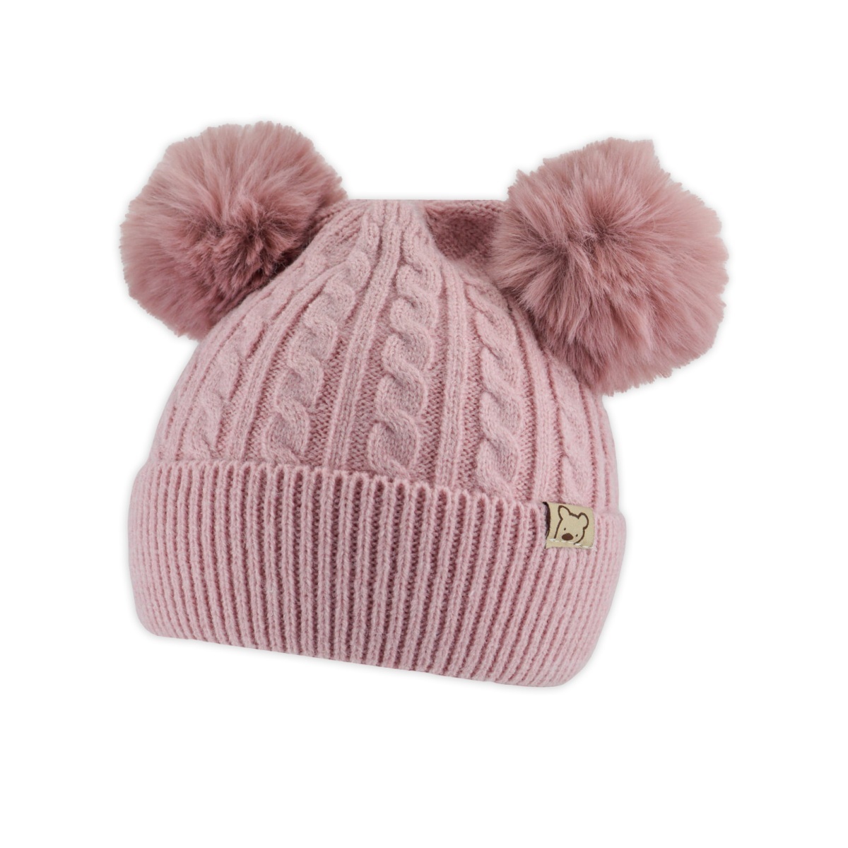 Pletená zimní čepice Bambulka - pudrově růžová, vel. 48-54 cm; 80-92 (12-24m); starorůžová