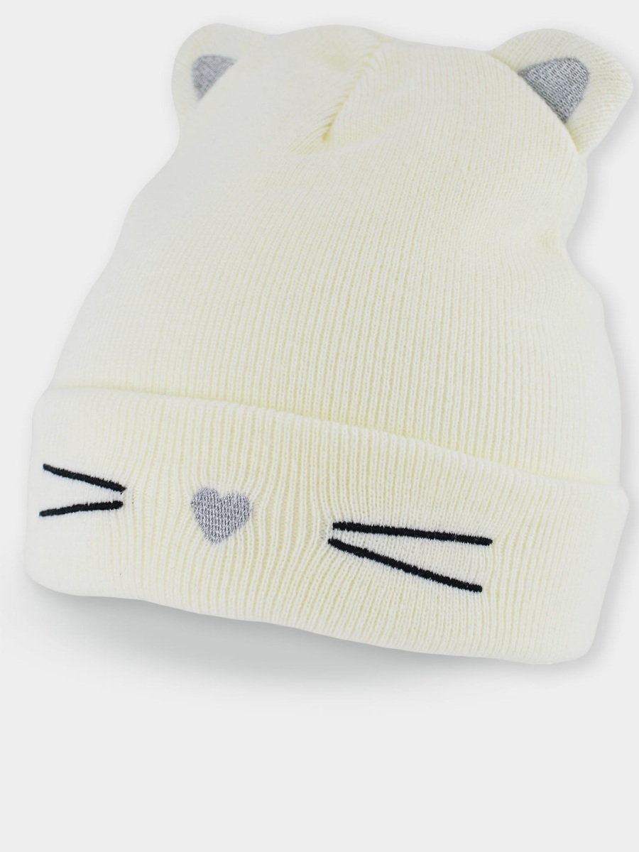 Dětská zimní čepice Kočička - ecru, vel. 46 - 50 cm; 104-128 (3-7r), 98-104 (2-4r); ecru, smetanová