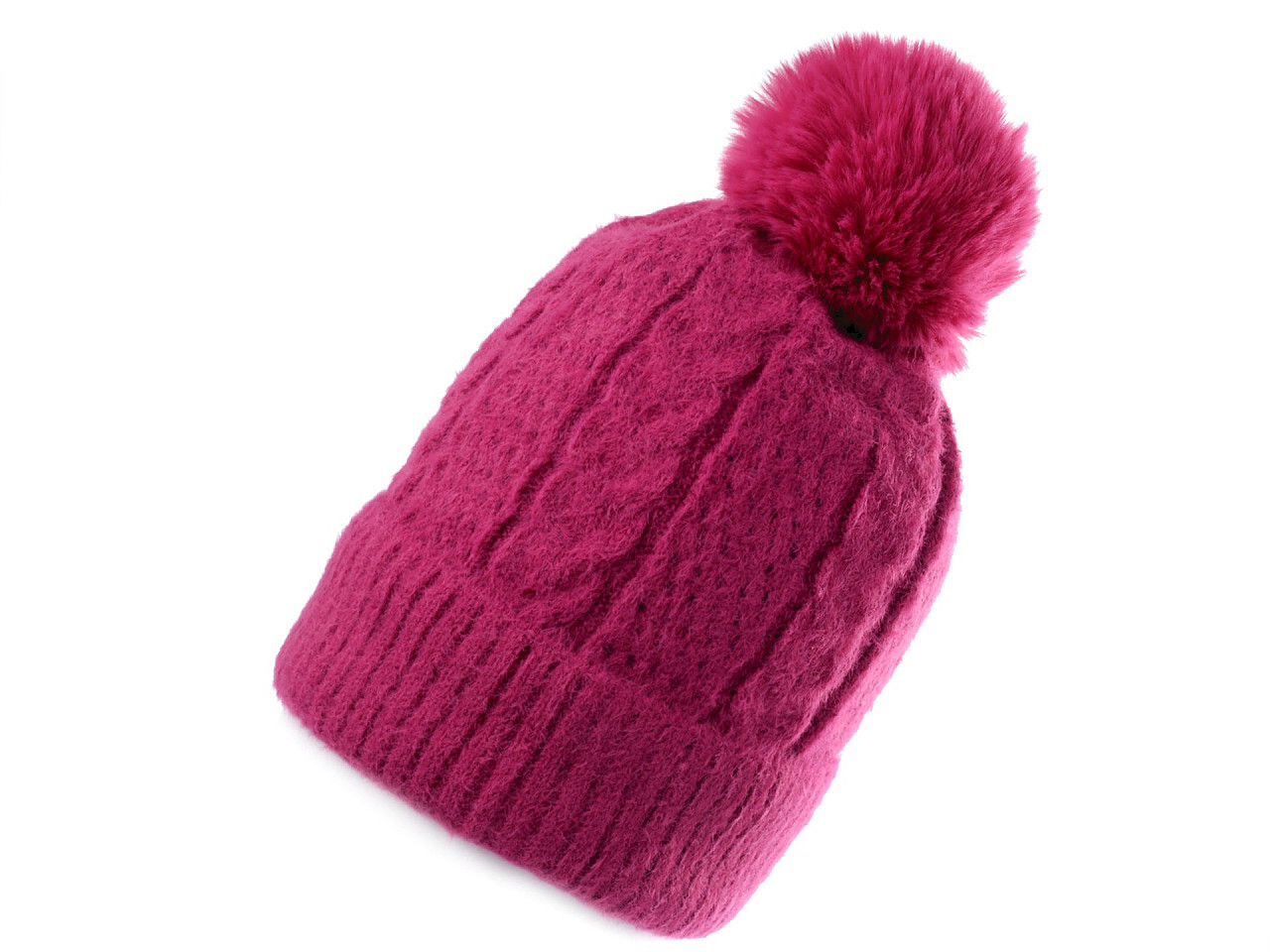 Dámská / dívčí zimní čepice s bambulí Emi Ross - 1 ks - 6 fialovorůžová