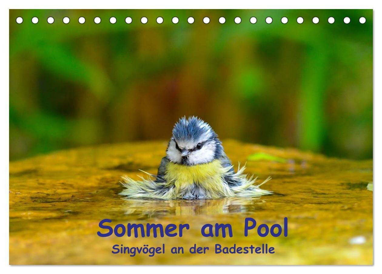 Sommer am Pool - Singvögel an der Badestelle (Tischkalender 2026 DIN A5 quer), CALVENDO Monatskalender