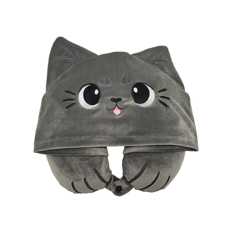 Plyšový cest. polštář s paměťovou pěnou a kapucí Hoodeazzz-Kočka Beans & Co