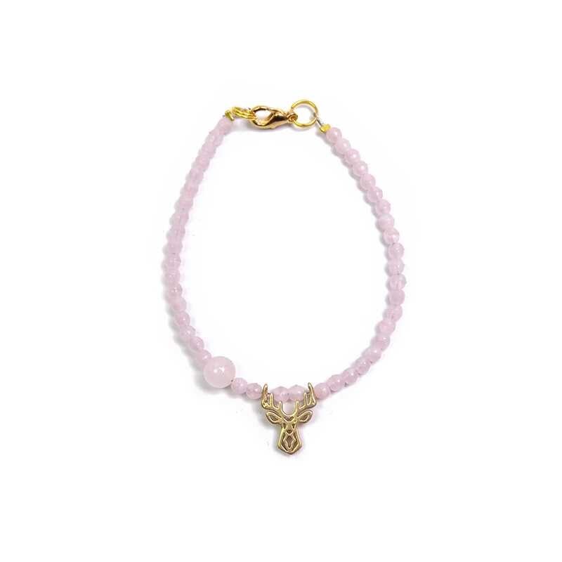 Korálkový náramek značky Deers přináší elegantní spojení minimalismu a tradičního designu. S drobnými světle růžovými korálky a pozlacenými kovovými částmi vyniká jemností a vkusem. Přívěsek v podobě jelínka s výškou 1,5 cm a kulatý růženín dodávají šperku osobitý styl. Délka 16,5 cm a praktické...