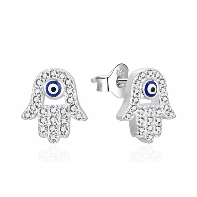 Stříbrné náušnice se zirkony Ruka Fátimy AGT-E105PW Agato