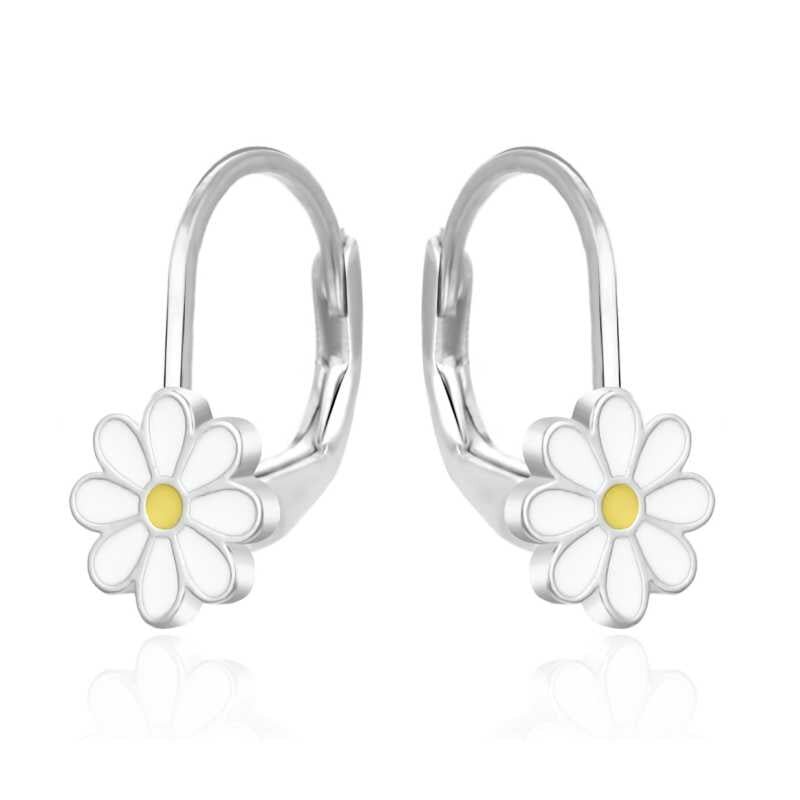 Stříbrné dívčí náušnice Bílá květina AGT-ED018L Agato