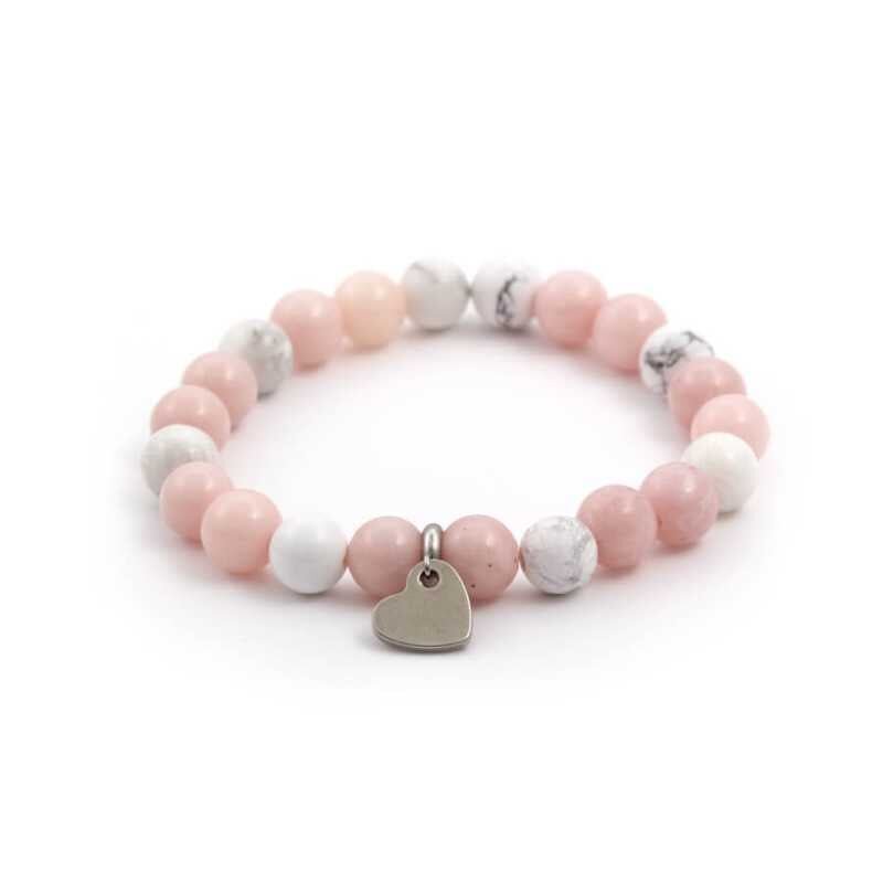 Náramek Agato spojuje krásu a sílu minerálních korálků v elegantním designu. Růžový jadeit a bílý howlit v harmonické kombinaci nejen skvěle vypadají, ale také přinášejí pozitivní energii a klid do vašeho života. Délka 17 cm a pružná gumička zajišťují pohodlné nošení. Tento stylový šperk je ideálním doplňkem pro každý outfit a dokáže podpořit vaši vnitřní rovnováhu a zdraví.