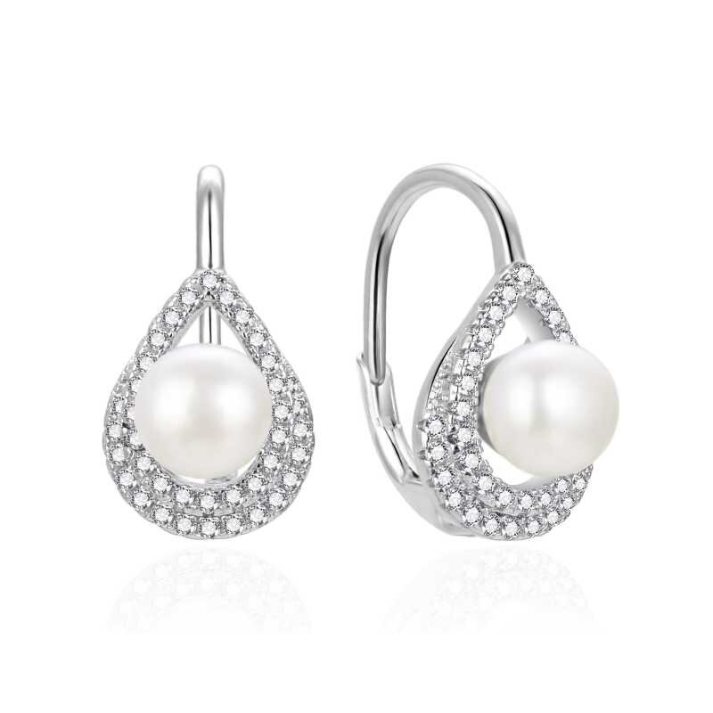 Stříbrné visací náušnice s perlami a zirkony AGT-E092LW-P Agato