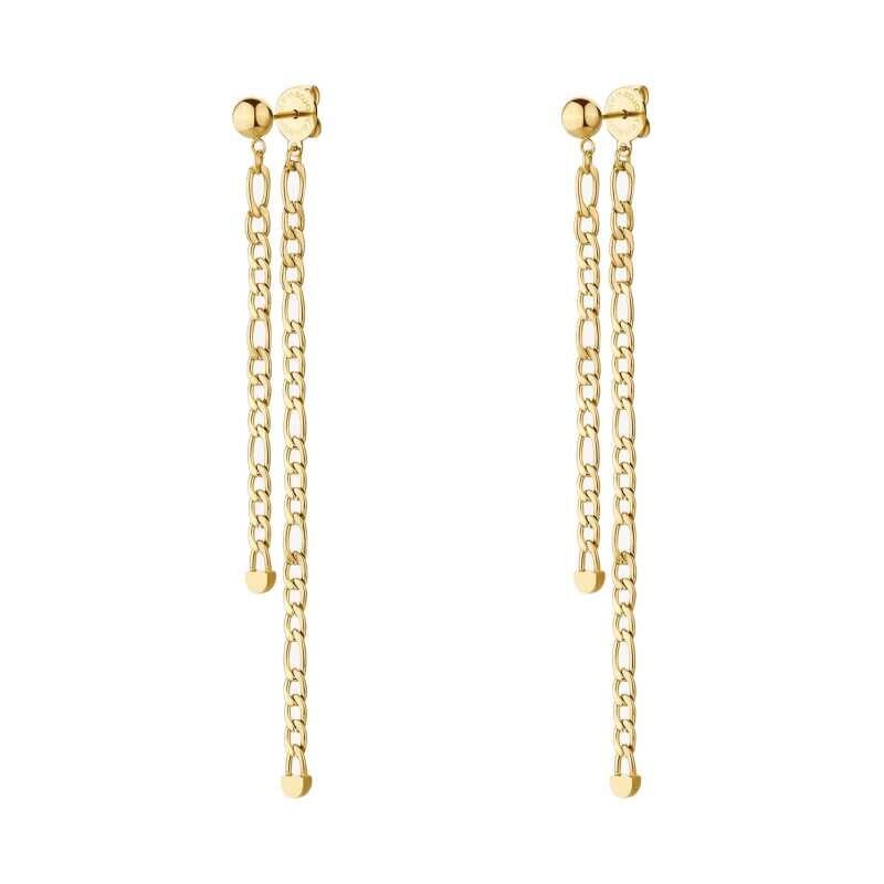 Náušnice od značky Brosway představují spojení elegance a kvality díky použití oceli 316L s luxusním zlatým PVD povlakem. Délka 6,7 cm a design s delšími řetízky typu figaro dodávají šperku jedinečný styl. Bezpečnostní puzetové zapínání zajišťuje pohodlné nošení. Tyto nadčasové kousky jsou ideální volbou pro každou příležitost, která podtrhne vaši osobnost a dodá vám šarm.