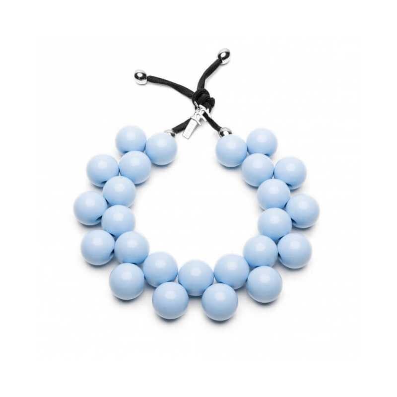 Ručně vyrobený náhrdelník od italské značky Ballsmania zaujme svou jedinečnou kombinací elegance a kreativity. Černá pružná šňůrka je zdobena pryskyřicovými korálky v nebesky modré barvě, které mají průměr přibližně 2,5 cm. Díky flexibilnímu designu se náhrdelník přizpůsobí vašemu krku a...