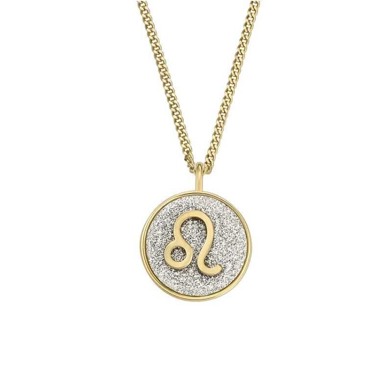 Elegance a osobnost se snoubí v dámském náhrdelníku značky Fossil. Vyrobený z kvalitní mosazi s luxusním zlatým PVD pokovením, tento šperk zaujme nejen svým blyštivým povrchem, ale i výrazným kulatým přívěskem se symbolem znamení zvěrokruhu Lev. Zapínání na karabinku zajišťuje snadné nošení....