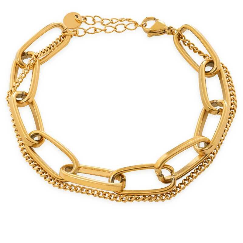 Elegantní náramek značky Troli spojuje moderní design s nadčasovou elegancí. Je vyroben z kvalitní oceli a pozlacený žlutým zlatem, což mu dodává luxusní nádech. Unikátní dvojité provedení, skládající se z masivního a jemného řetízku, zaručuje, že vás tento šperk zaručeně vystoupí z davu. Délka...
