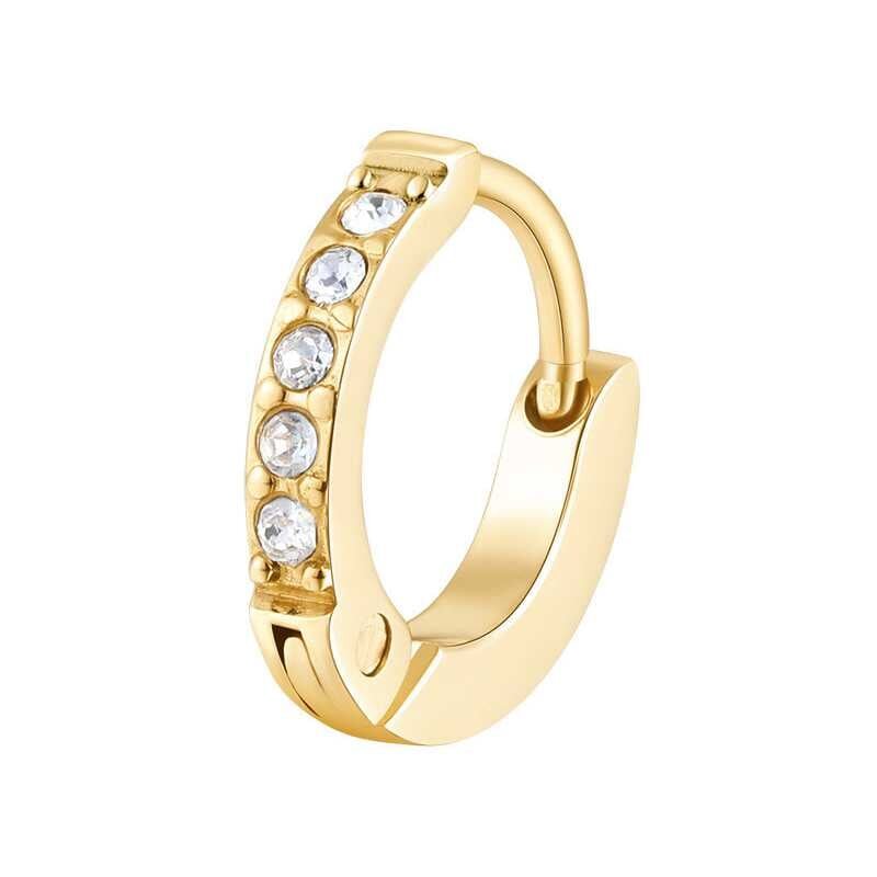 Elegantní single náušnice značky Brosway přidají vašemu stylu šmrnc. Vyrobená z odolné oceli a pozlacená žlutým zlatem, je doplněna třpytivými čirými krystaly, které fascinují na první pohled. Průměr 1 cm ji činí ideální volbou pro kombinaci s dalšími náušnicemi v uších, čímž umožňuje vytvořit...