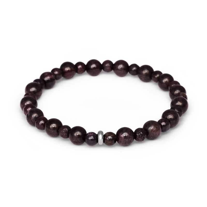 Minerální náramek značky Agato přináší spojení elegance a síly přírody. S tmavými korálky granátu, které mají průměr 0,4 cm a 0,6 cm, se stává skvělým doplňkem pro každodenní nošení. Ocelový kroužek dodává náramku stylový nádech a pružná gumička zajišťuje komfort během nošení. Granát je známý...