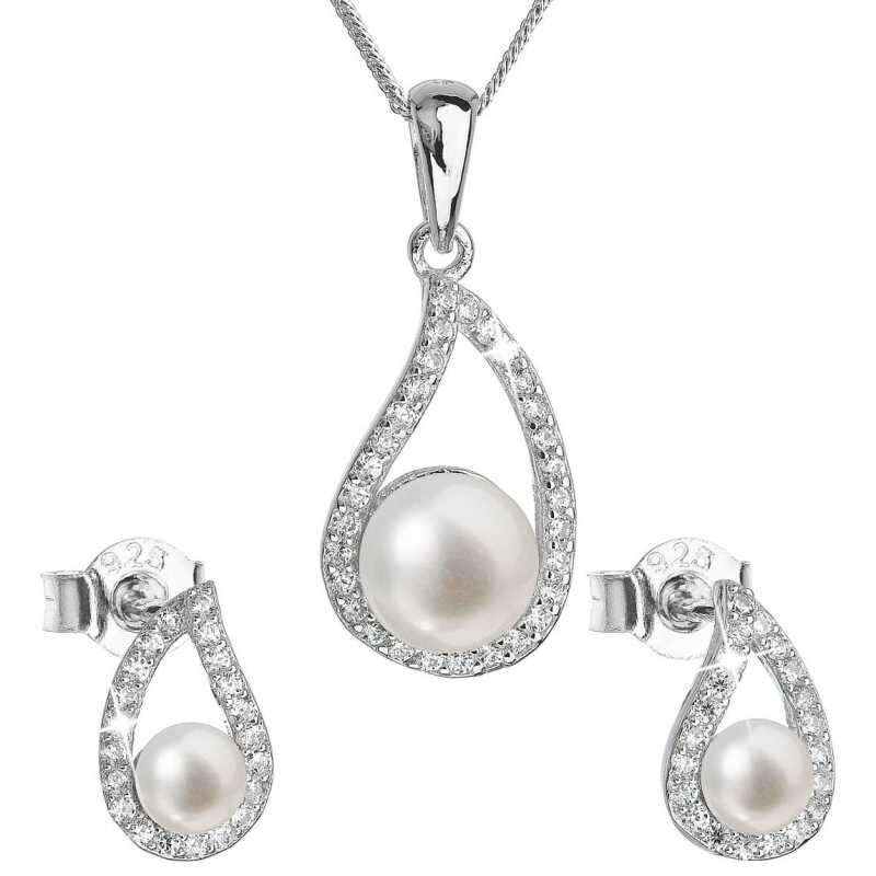 Luxusní stříbrná souprava s pravými perlami Pavona 29027.1 (náušnice, řetízek, přívěsek) Evolution Group