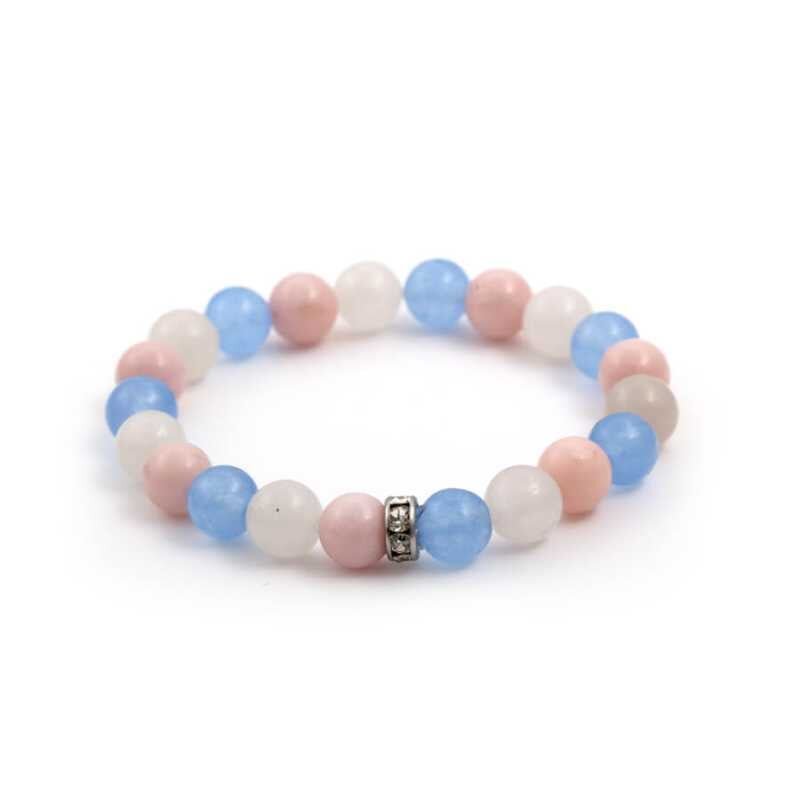 Nadčasový náramek značky Agato představuje skvělou volbu pro každou ženu, která touží po elegantním doplňku. Vyrobený z minerálních korálků, včetně růžového a sněžného jadeitu, a světle modrého malajského nefritu, je nejen krásným šperkem, ale i zdrojem pozitivní energie. Pružná gumička zajišťuje...