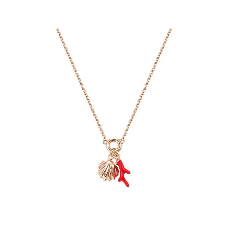 Přívěsek italské značky Rosato přináší spojení elegance a letního kouzla. Vyrobený z kvalitního stříbra a pozlacený růžovým zlatem, tento jedinečný kousek se pyšní designem inspirovaným mořskými plody. Červená glazura na korálu dodává náhrdelníku osobitost a živost. S délkou 45 cm se skvěle hodí...