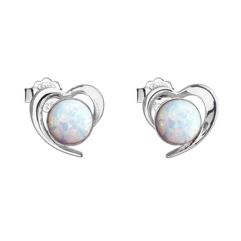Stříbrné náušnice srdíčka s bílými syntetickými opály 31259.3 white Evolution Group