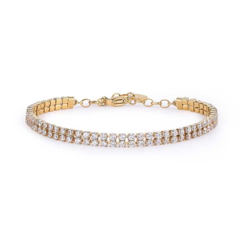Dvouřadý pozlacený tenisový náramek s čirými zirkony Desideri BEI097 Brosway