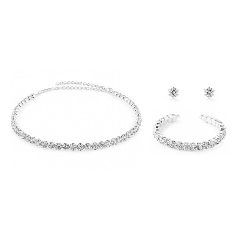 Třpytivá sada dámských šperků s krystaly (náhrdelník, náramek, náušnice) Troli