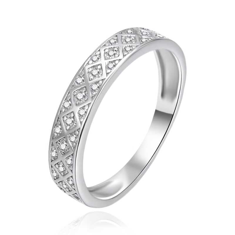Tento elegantní stříbrný prsten od značky Agato, vyrobený ze stříbra o ryzosti 925/1000, je ideálním doplňkem pro každou ženu. Rhodiovaný povrch minimalizuje alergické reakce a zajišťuje dlouhotrvající lesk. S propracovaným vzorem kosočtverců a osazením třpytivými čirými zirkony se tento šperk stane výjimečným kouskem, který skvěle doladí váš styl a dodá mu nádech elegance.