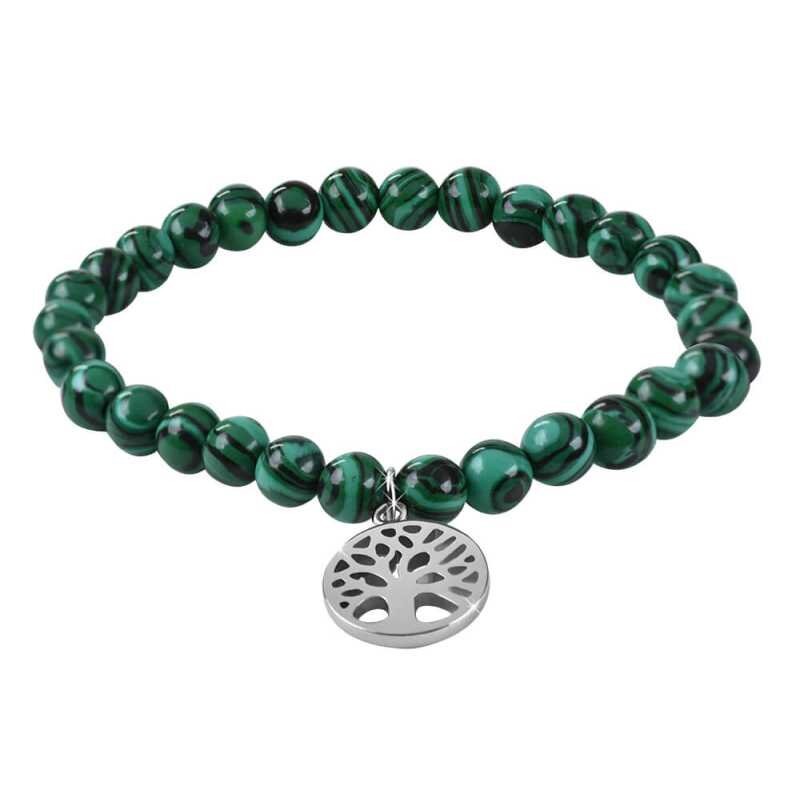 Korálkový náramek z malachitu se stromem života Troli / Délka: 17 cm