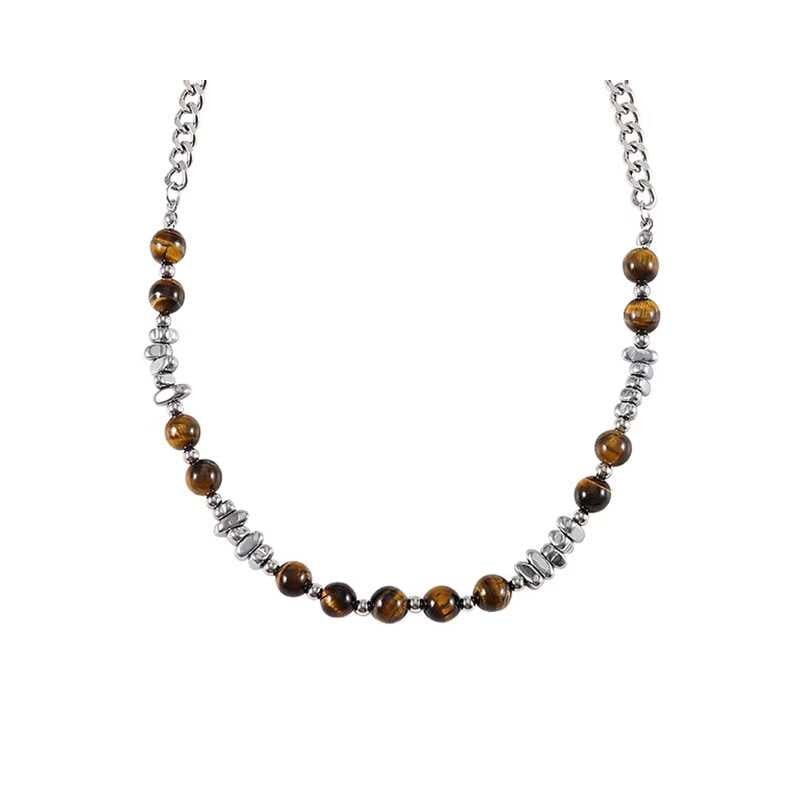 Korálkový náhrdelník z oceli s tygřím okem Troli