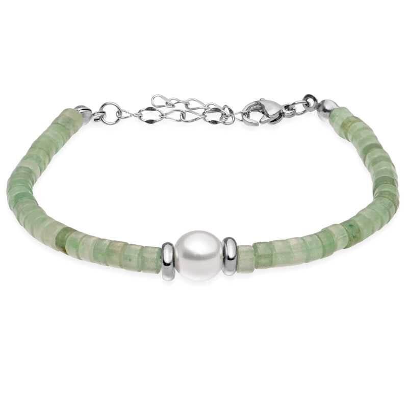 Něžný zelený korálkový náramek s perlou VESB0712S-E Troli