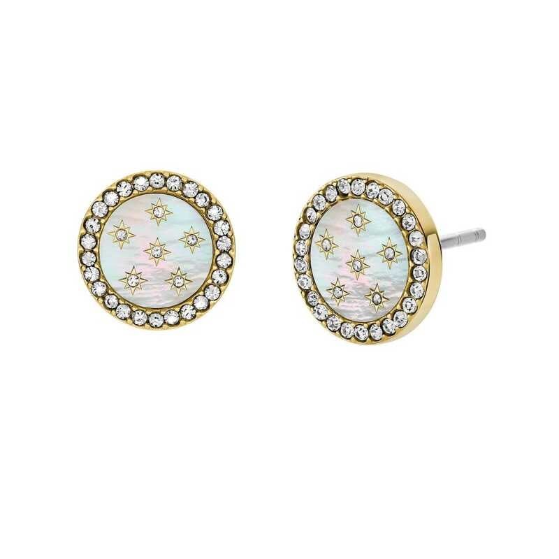 Okouzlující pozlacené náušnice s perletí a krystaly JF04868710 Fossil