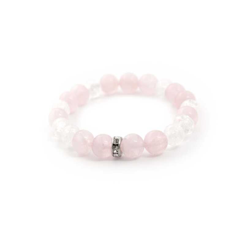 Korálkový náramek z růženínu a praskaného křišťálu MINK14/17 Agato