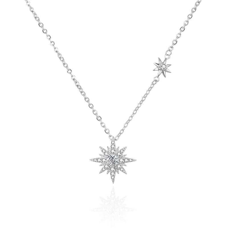 Elegantní náhrdelník od značky Agato je skvělou volbou pro každou ženu, která touží po stylovém doplňku. Vyrobený ze stříbra ryzosti 925/1000 s rhodiovaným povrchem, minimalizuje alergické reakce a dlouho si uchovává svůj lesk. Dva přívěsky ve tvaru hvězd, zdobené čirými zirkony, dodávají...