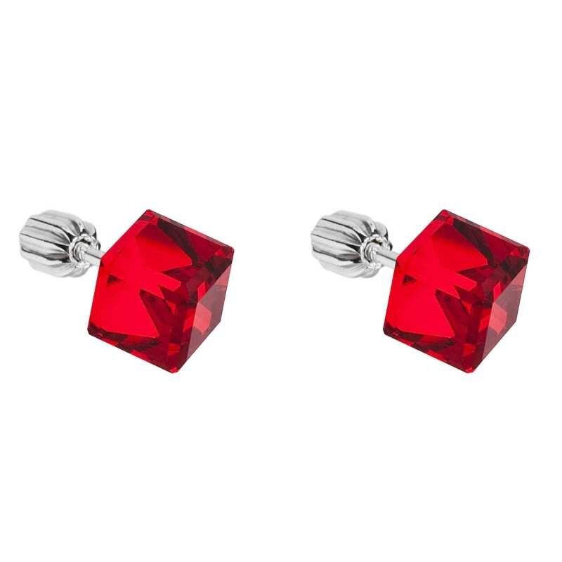 Náušnice Evolution Group s červenou kostičkou z krystalu v odstínu Light Siam jsou dokonalým doplňkem pro každou příležitost. Díky rhodiovanému povrchu si stříbro zachovává svůj lesk a minimalizuje riziko alergických reakcí. Šroubovací zapínání na balonek zaručuje bezpečné nošení a zabraňuje ztrátě šperku. Tyto elegantní náušnice efektivně oživí váš outfit a dodají mu šmrnc.