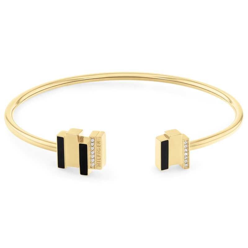Moderní otevřený pozlacený náramek s krystaly Layered 2780846 Tommy Hilfiger