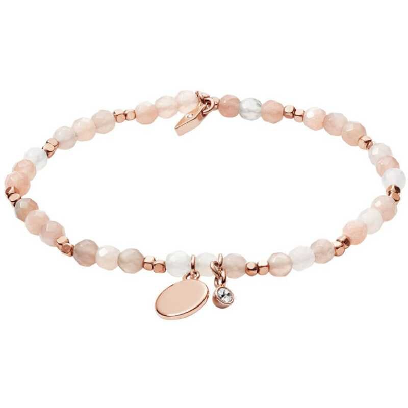 Náramek značky Fossil kombinuje styl a funkčnost díky korálkům z měsíčního kamene, který je známý svými léčivými vlastnostmi a schopností zmírnit nespavost. Růžově pozlacený přívěsek a krystal dodávají šperku elegantní nádech. Pružné provedení zajišťuje snadné navlékání a pohodlné nošení. Tento nadčasový kousek skvěle ozdobí vaše zápěstí a podtrhne váš osobní styl.