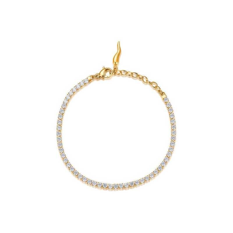 Elegance a moderní design se snoubí v ocelovém náramku značky Brosway, který je vyroben z kvalitní oceli 316L a pozlacen oblíbeným zlatem. Dílky náramku zdobí čiré zirkony, které dodávají šarm, a originální přívěsek ve tvaru chilli papričky přináší hravý prvek. S délkou 18,5 cm a praktickým...