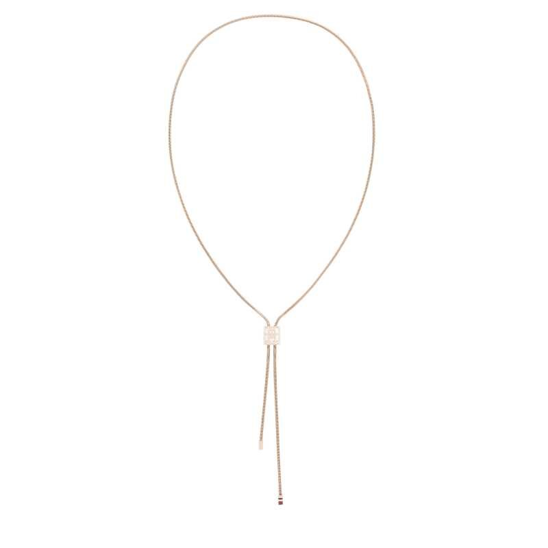 Elegantní náhrdelník značky Tommy Hilfiger je vyroben z kvalitní oceli a opatřen růžovozlatým PVD povlakem, který zaručuje dlouhou životnost. Unikátní posuvná spona vám umožní snadno regulovat délku až do 76 cm. Spona je navíc zdobena bílým smaltem a logem značky, což dodává šperku na...