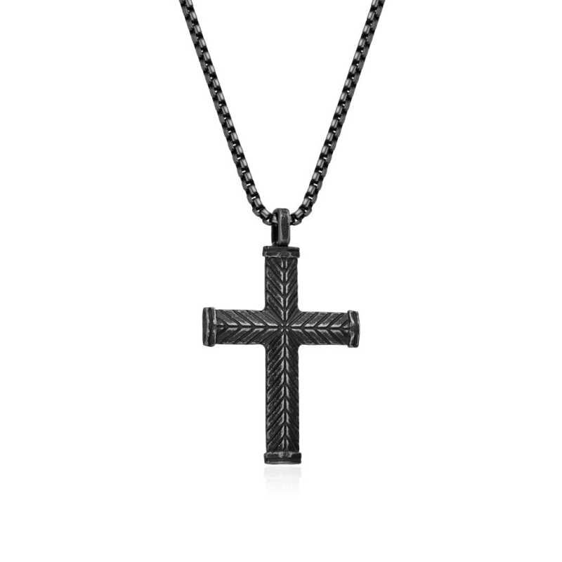 Černý pánský náhrdelník z oceli Křížek N1000509 Diverse