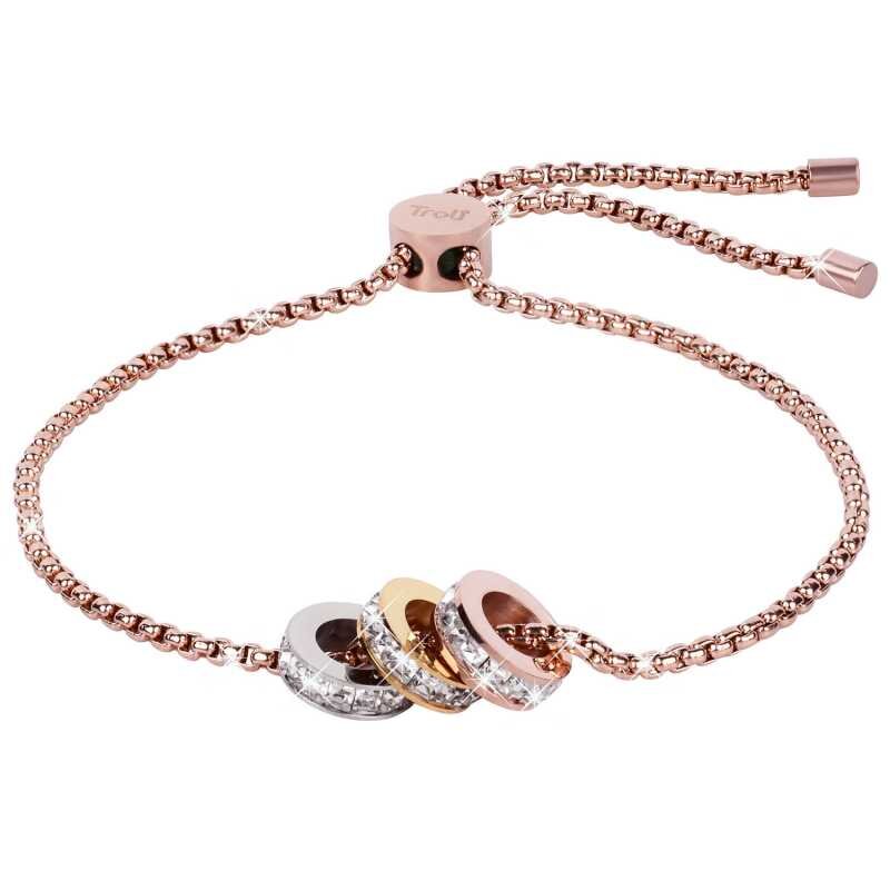 Slušivý náramek značky Troli je ideálním doplňkem pro každou příležitost. Vyroben z růžově pozlacené oceli a opatřen nastavitelným zapínáním s logem, skvěle se přizpůsobí vašemu zápěstí až do délky 26 cm. Tři elegantní ocelové korálky, osazené čirými krystaly, v kombinaci s žlutě a růžově zlatými...