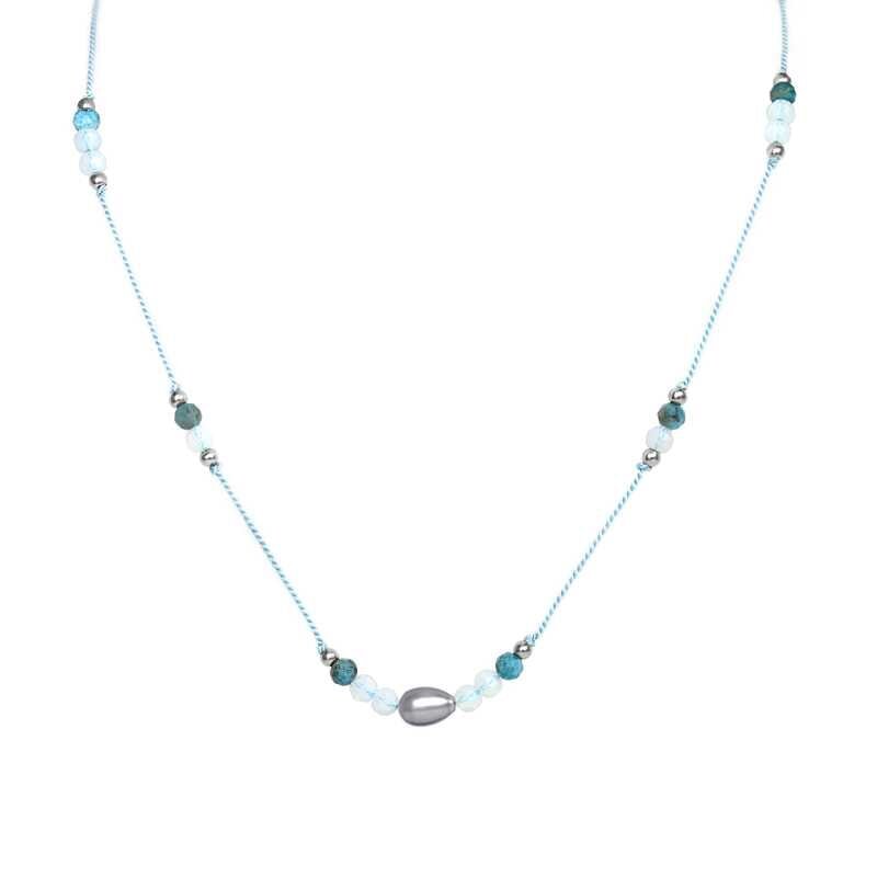 Šňůrkový náhrdelník s apatitem, opalitem a říční perlou HE08K3S-LB Agato