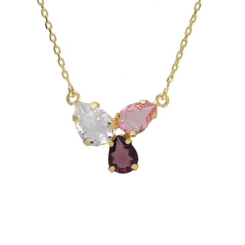Elegantní dámský náhrdelník značky Victoria Cruz spojuje krásu a kvalitu. Vyrobený ze sterlingového stříbra a pozlacený 18karátovým žlutým zlatem, tento šperk okouzlí svou jemností. Tři nádherné krystaly s hruškovým výbrusem v čiré, světle růžové a vínové barvě dodávají náhrdelníku jedinečný...