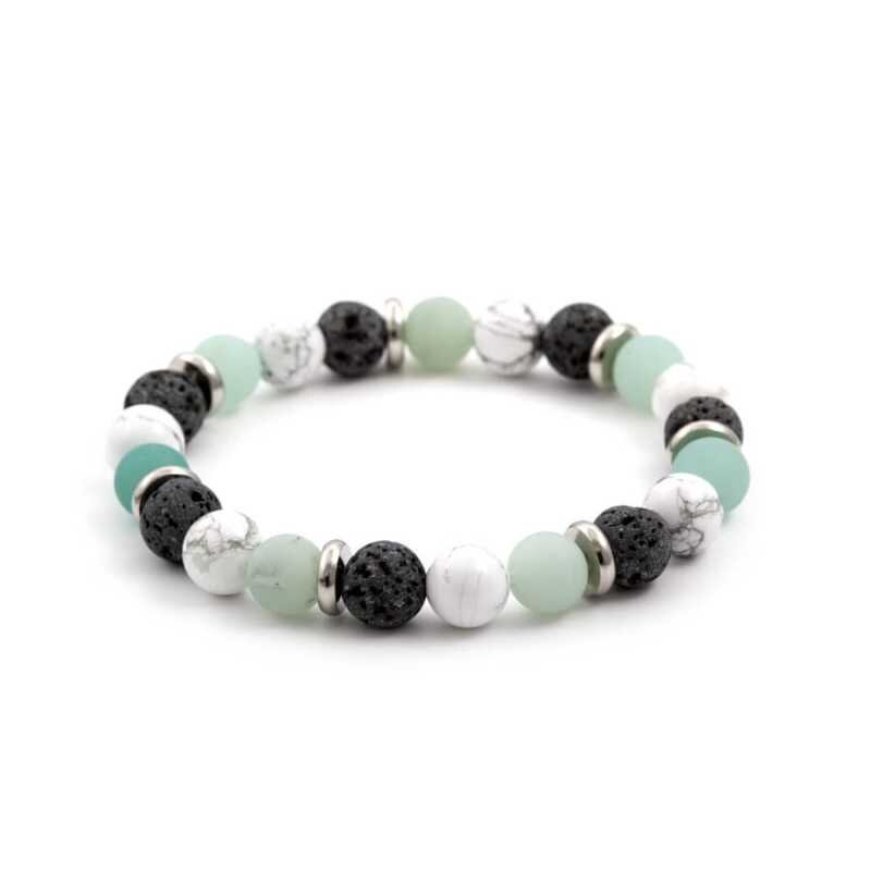 Korálkový náramek z amazonitu, lávového kamene a howlitu MINK36 Agato / Délka: 17 cm