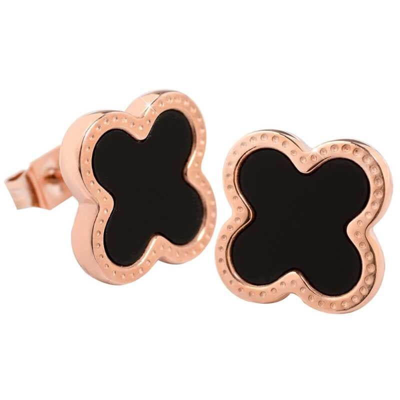 Elegantní náušnice značky Troli, vyrobené z růžově pozlacené oceli, přinášejí do vašeho šperkovníku nádech romantiky. Jejich tvar kytiček s kontrastním černým středem dodá vašemu vzhledu osobitý styl. Díky klasickému zapínání na puzetku se snadno nosí a skvěle se hodí na každou příležitost. Oživte svůj outfit tímto jedinečným šperkem, který zaručeně upoutá pozornost.