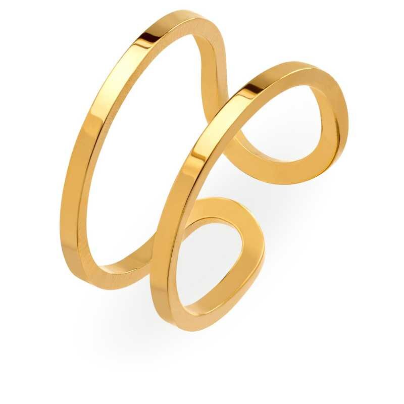 Prsten značky Troli spojuje nadčasový design s praktickým provedením. Vyrobený z kvalitní oceli a pozlacený žlutým zlatem, nabízí elegantní vzhled, který osloví každou moderní ženu. Jeho otevřené provedení umožňuje snadné přizpůsobení velikosti prstenu, což zajišťuje komfort při nošení. Šířka 1,2...