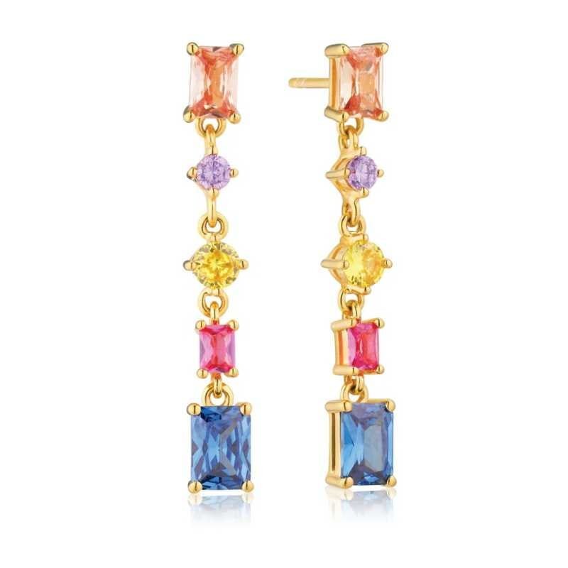 Visací pozlacené náušnice s barevnými kubickými zirkony Ivrea SJ-E12320-XCZ-YG Sif Jakobs